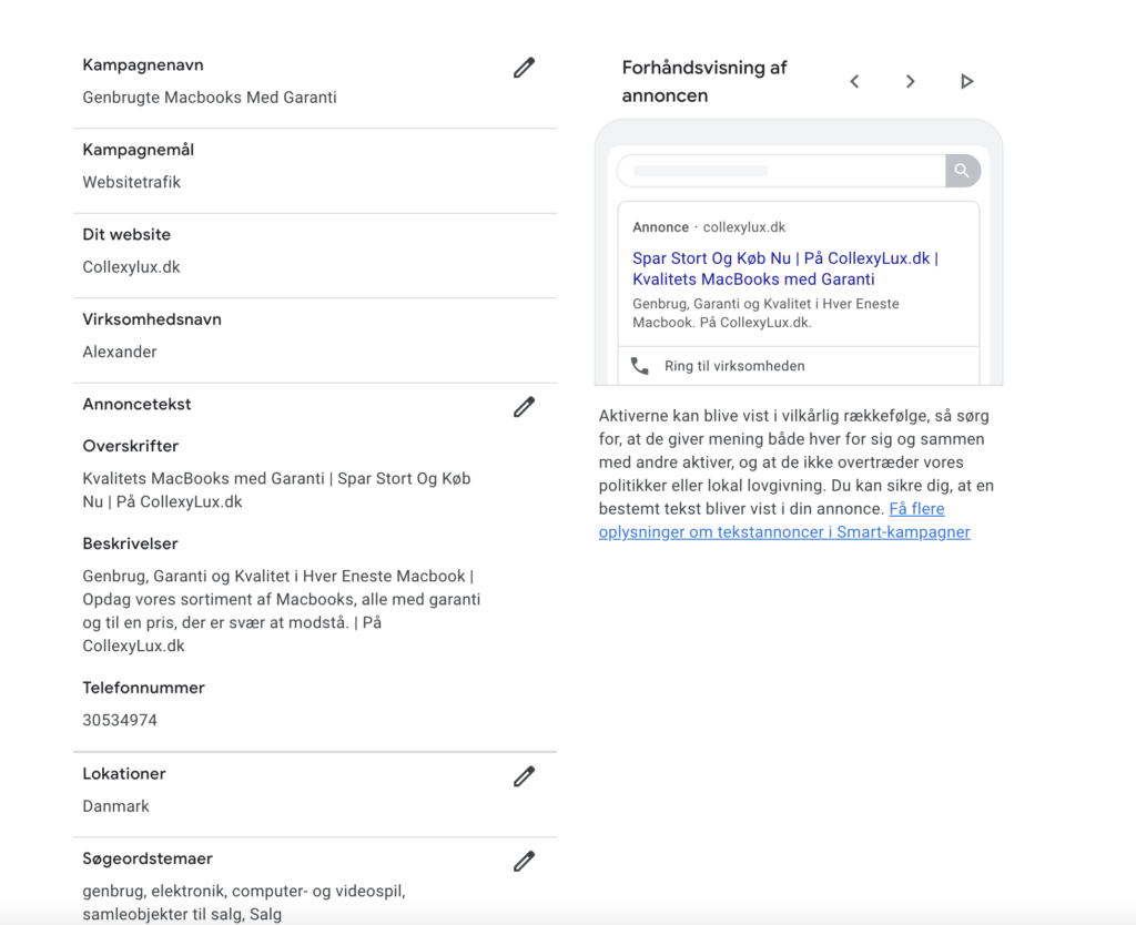 I min detaljerede rapport om SEM og SoMe strategier for CollexyLux har jeg dykket ned i, hvordan specifikt tilpassede annoncer kan hjælpe med at nå ud til bestemte personaer effektivt. Rapporten belyser nøje udvalgte søgeord som “MacBooks”, “Genbrug”, og “Kvalitet”, der ikke alene er højt relevante for virksomheden, men også har potentialet til at trække betydelig trafik til hjemmesiden til en optimal omkostning pr. klik (CPC).